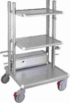 Стойка передвижная для эндоскопических аппаратов и устройств (СА-1, малая, 3 полки, держатель банок, ящик с удлинителем)